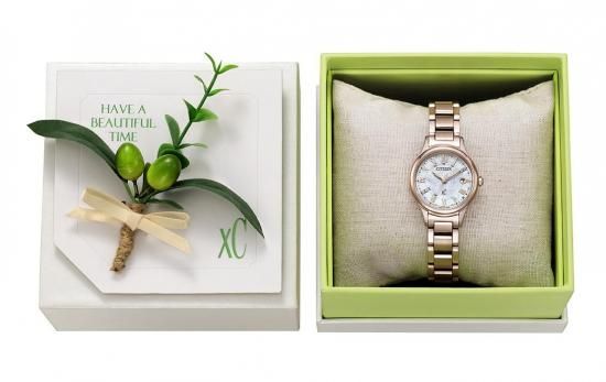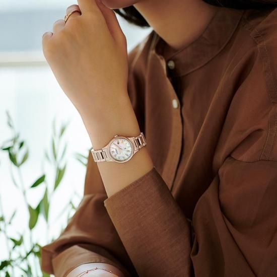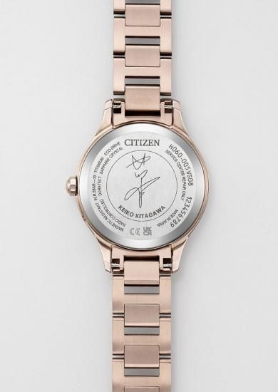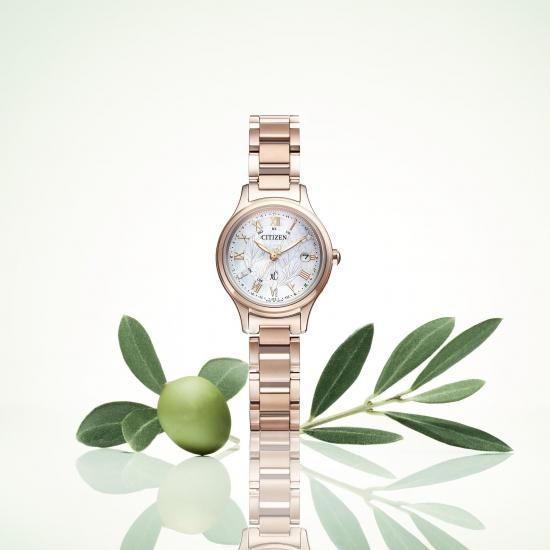 また、北川景子さんの誕生日(8月22日)にちなんで、8時と2時の位置に合計4ポイントのラボグロウン・ダイヤモンドをセッティング。さらに、22分の位置にはオリーブの花のモチーフをワンポイントとして添え、遊び心を感じさせるこだわりのデザインです。