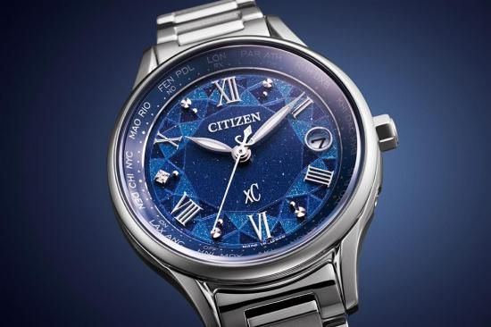 冬の澄んだ空気を表現したブルーの文字板に、ステンドグラスのキラキラとした輝きをイメージしたパターンを繊細に描いたデザイン。インデックスには、すっきりとした印象のローマ数字とともに、拡散する光を表現したカットパーツをレイアウトしています。9時の位置には1ポイントのラボグロウン・ダイヤモンドをセッティング。腕元に華やかさを添える1本です。