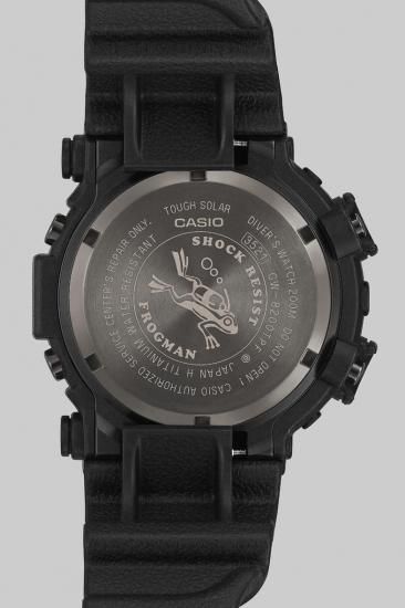 ブラックベースに大胆な蛍光グリーンの縦縞模様を施し、ミスジヤドクガエルの強力な毒性を象徴する鮮やかでタフなデザインに仕上げました。でこぼこの皮膚の質感はバンドとベゼルへのスプレー塗装で再現。さらに、ケース裏のカエルのキャラクター刻印もミスジヤドクガエルの縦縞模様を纏った特別仕様に仕上げています。タフソーラーを備え、蛍光灯のわずかな光でも発電し強負荷のかかる各種機能を安定駆動。